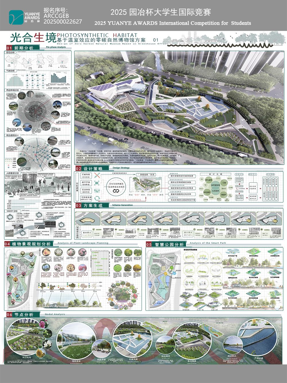 本帖最后由 陈婕 于 2025-7-20 00:01 编辑 作品简介:本设计以 “光合生境” 为主题,旨在打造一座绿色建筑的典范。方案灵感源自光合作用,建筑如生态系统核心,将自然元素全方位引入。大面积玻璃幕墙引入充足 ...