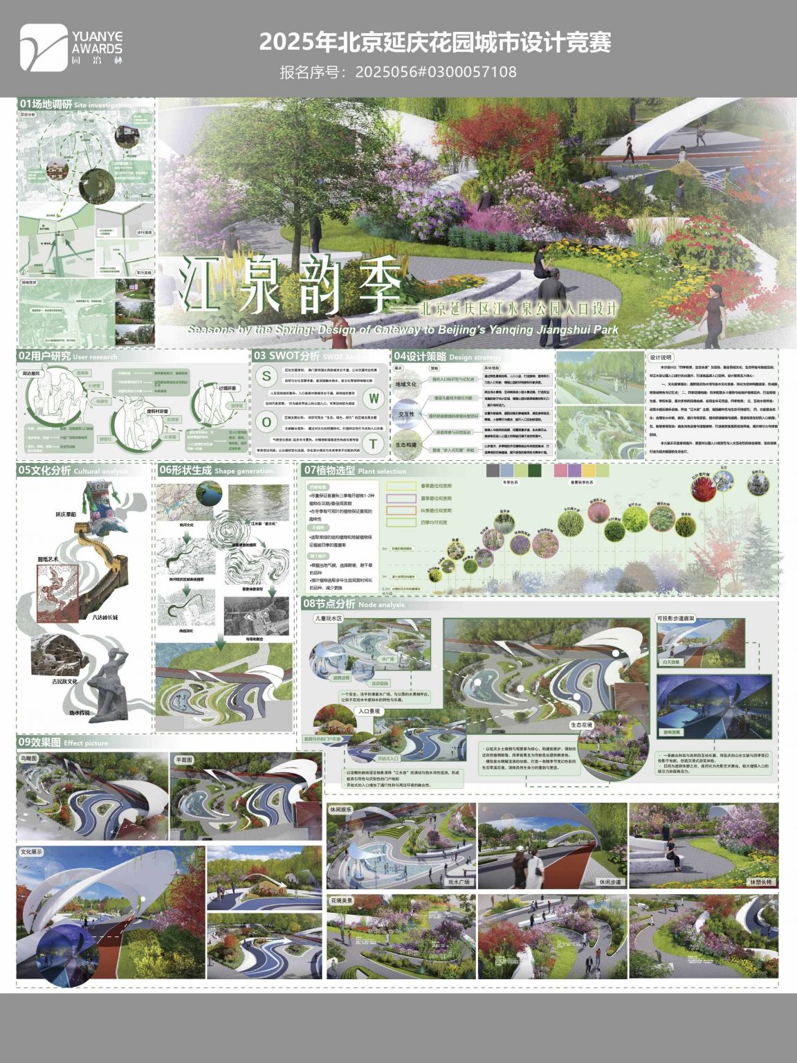 本次设计以“四季有景、生态永续”为核心目标,将地域文化、四季生态体验、智能互动和现代功能相结合,对江水泉公园入口进行设计优化,旨在将其打造成高品质的公园入口空间。 本次设计聚焦五大核心: 一、文化叙事与 ...